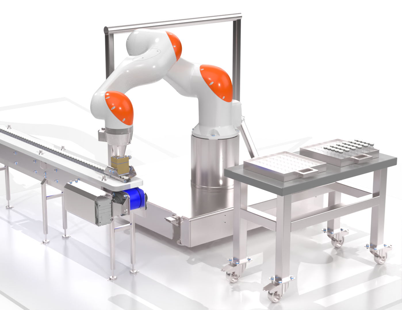 La manipulación manual de viales con contenido sensible o potencialmente peligroso supone un riesgo para el operario y una fuente de errores en procesos repetitivos. Esta aplicación con robot colaborativo automatiza la recogida de cinco viales desde un transportador y su colocación ordenada en bandejas, reduciendo la exposición humana, mejorando la trazabilidad y optimizando la ergonomía en el área de trabajo.